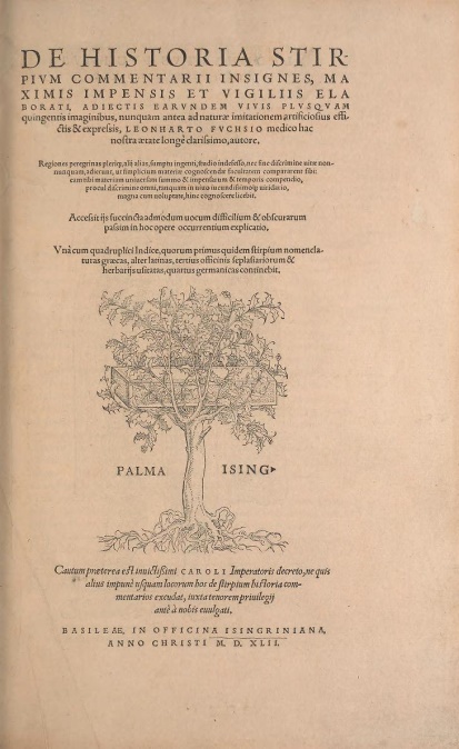 Même s’il se nourrit d’influences anciennes, comme Pline l’Ancien (23-79), Dioscoride (1er siècle ap. JC) ou Galien (129-216), Fuchs donne toute sa place à la démarche d’observation directe des plantes. Il s’agit de les identifier correctement, dans l’objectif pratique de connaître leurs propriétés médicales. Pour ce faire, les gravures, dont le trait est extrêmement fin, ont été conçues dès l’origine pour être peintes ; mais la mise en couleur est restée marginale, du fait de son caractère onéreux.