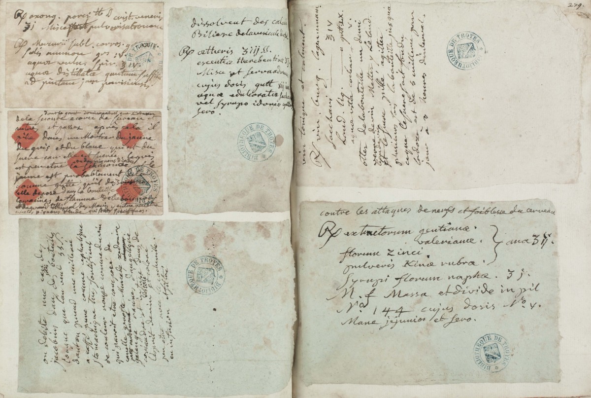 - Recettes diverses pour lutter contre les maux de dents et de bouche. Carnet de notes du curé de Vauchassis, sans date. [Ms 2646]. Photo Médiathèque de Troyes Champagne Métropole