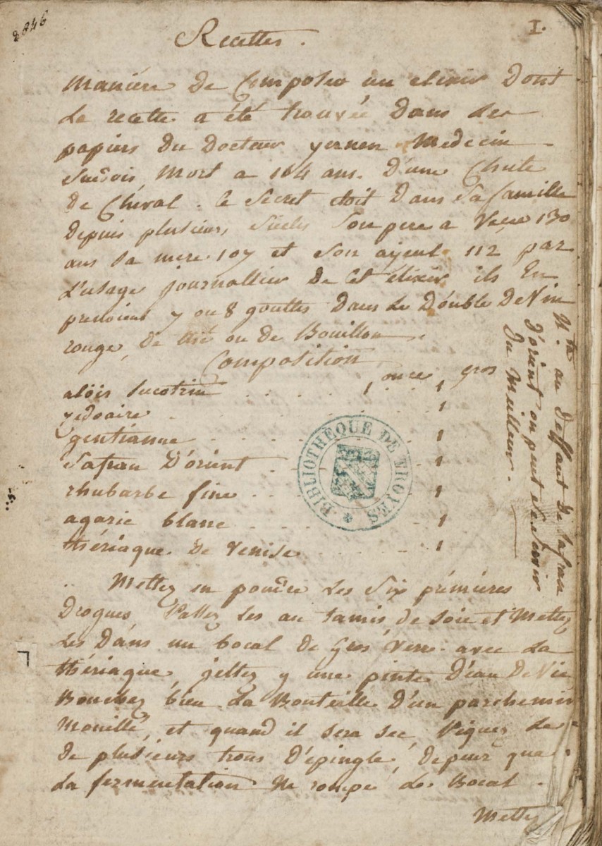 Pour présenter sa tisane dans ses carnets de note, le curé-médecin utilise un argument qui doit faire autorité. Il affirme en effet que sa tisane prolonge la vie jusqu’à des âges irréalistes et inespérés pour l’époque :