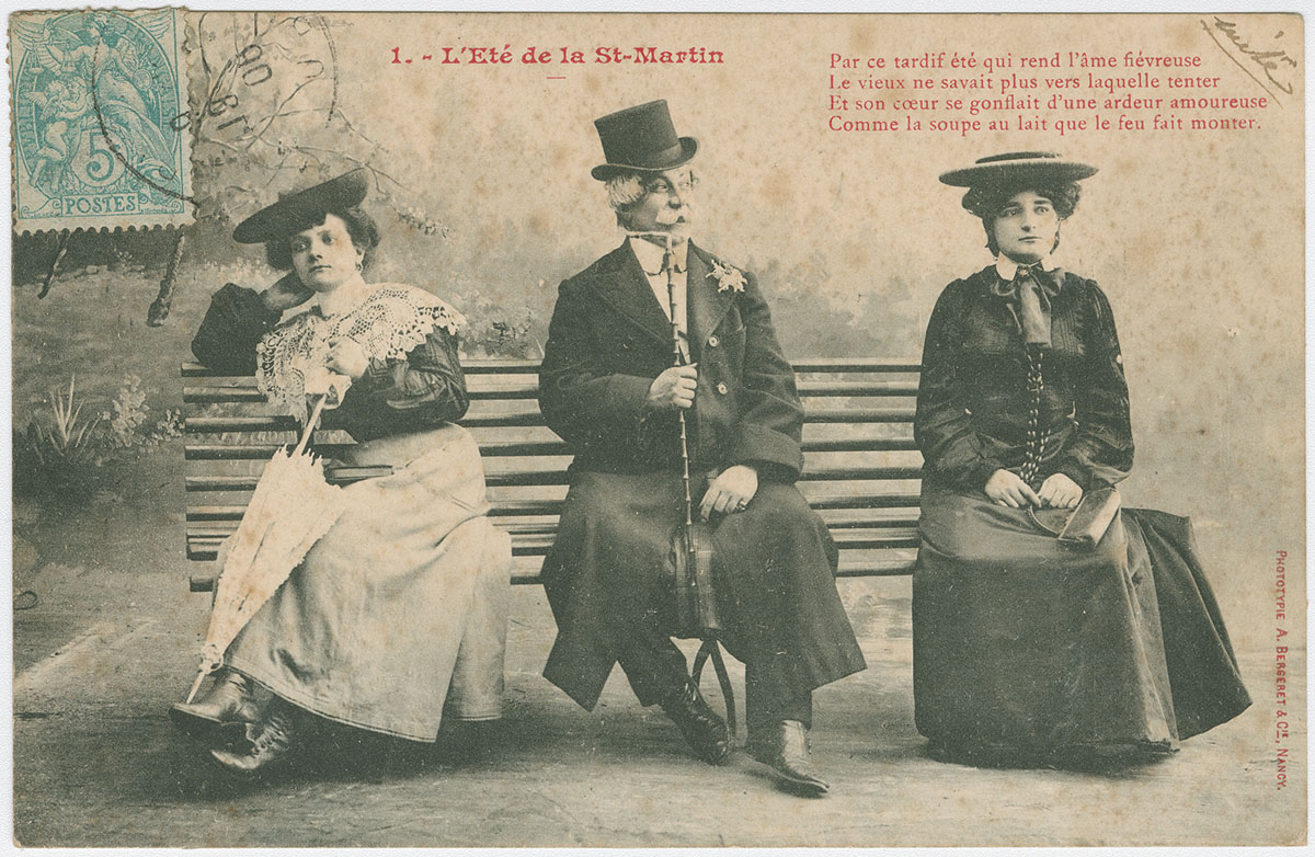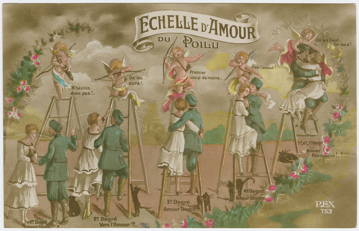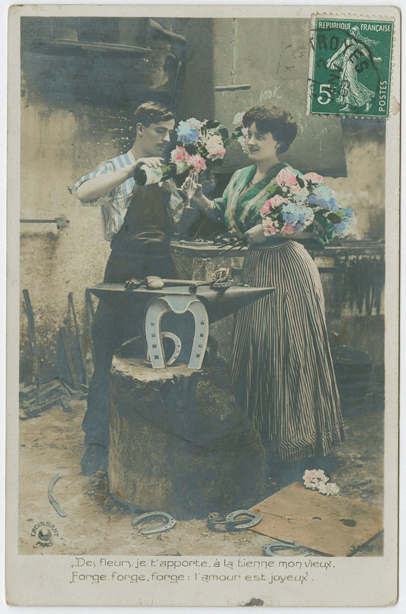 En ce début de siècle, l’exode rural, le développement des transports ou encore la guerre, éloignent les amoureux. Mais ils mettent aussi en relation des personnes de milieux géographiques ou sociaux divers. La carte postale devient le lien qui relie ceux qui s’aiment et qui sont séparés.