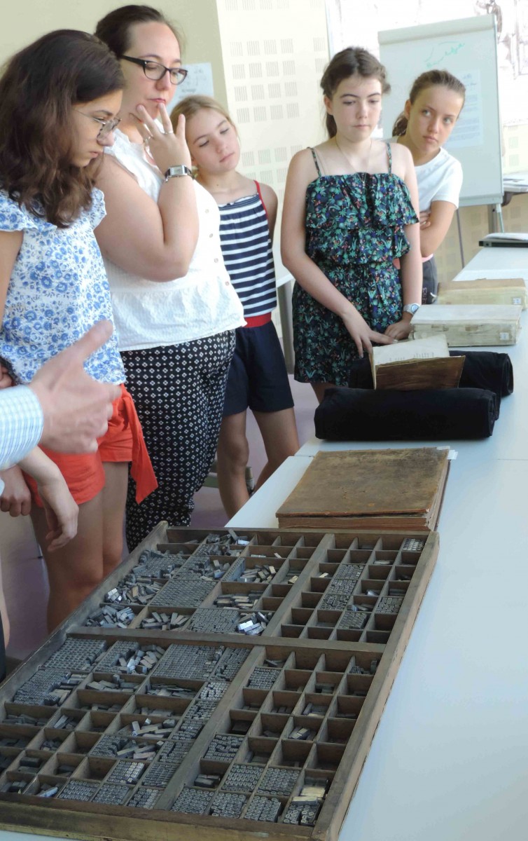 Lors de leur visite, les élèves du Conservatoire Marcel Landowsky ont notamment pu voir de près une casse d’imprimeur contenant des caractères d’imprimerie (au premier plan). Photo Médiathèque Jacques Chirac, Troyes Champagne métropole