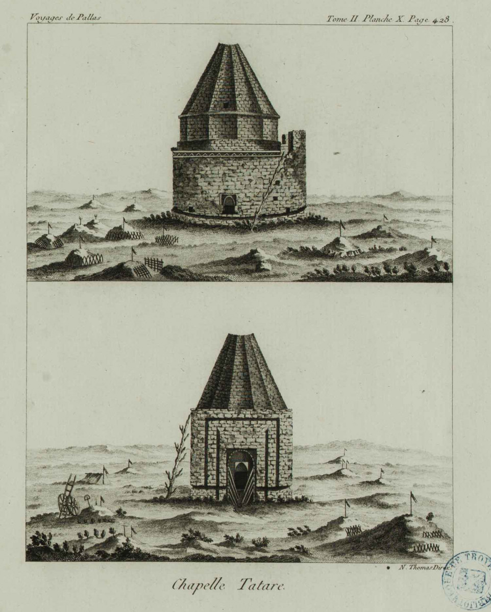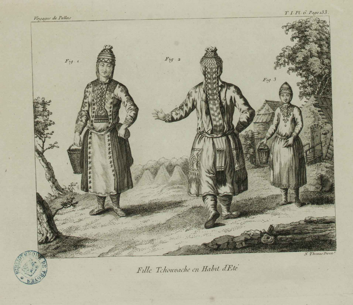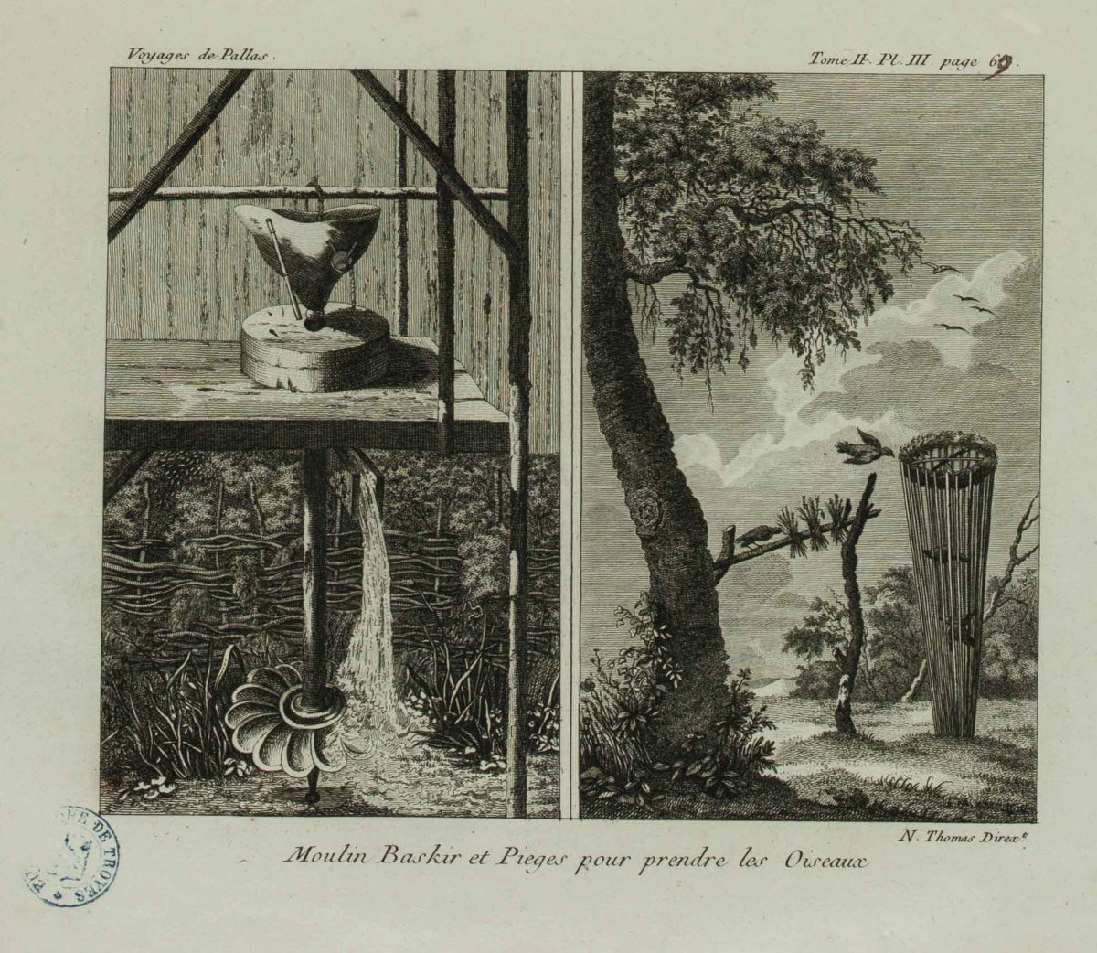 C’est justement à l’entourage de Catherine II qu’appartient le médecin et botaniste berlinois Peter Simon Pallas. Ses voyages dans les différentes provinces de Russie sont traduits en français en 1793. Sa description, bien plus scientifique que celle d’Hauteroche est très attentive aux costumes et aux techniques des populations qu’il rencontre.