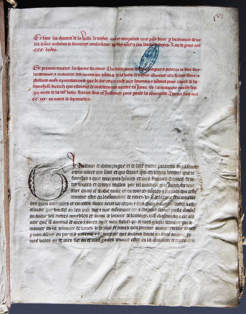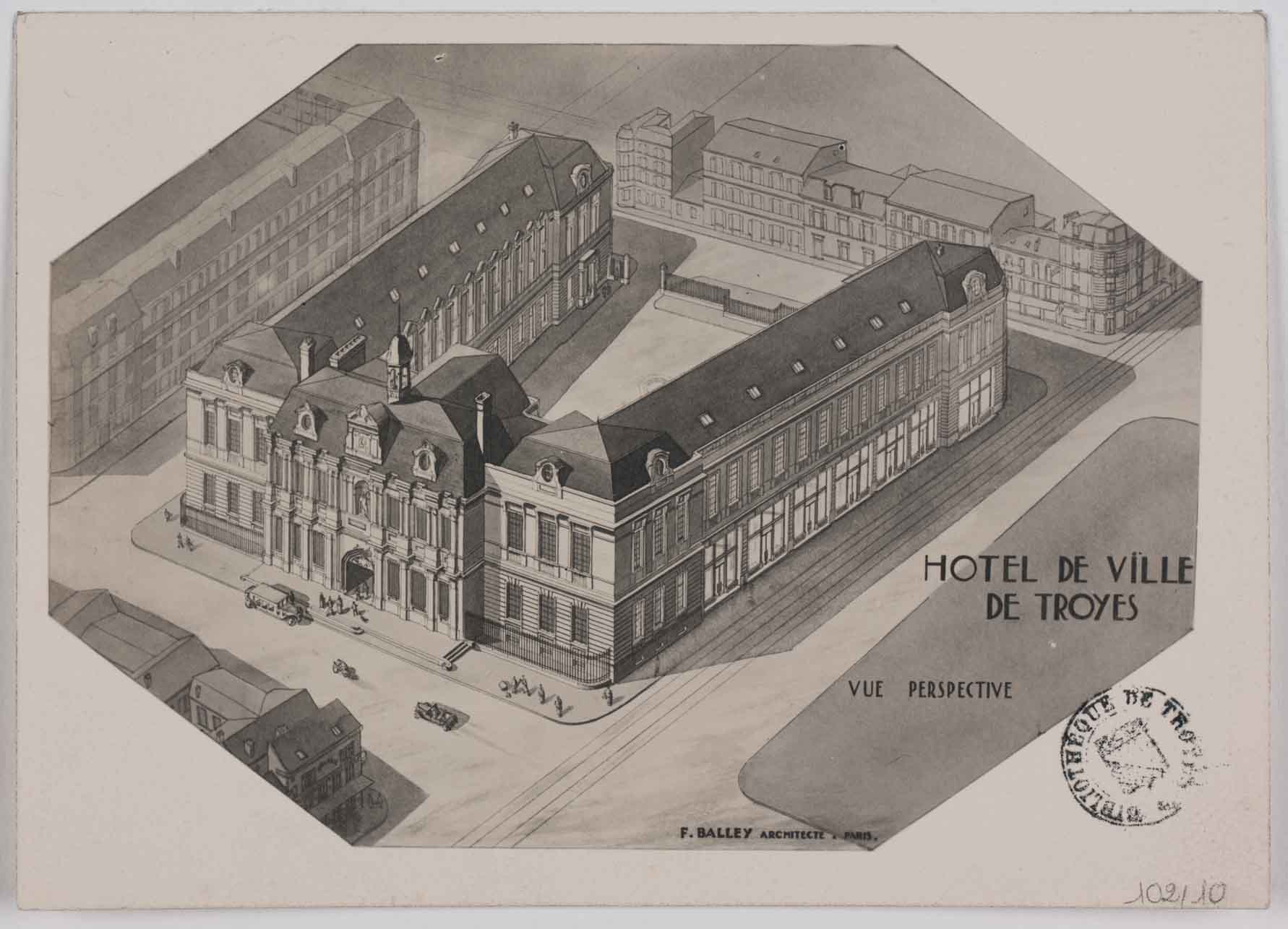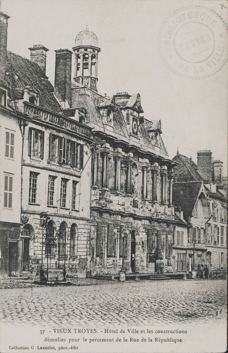 Depuis le 11e siècle des communautés urbaines éclosent et forment des assemblées communales. À Troyes, la première assemblée officielle date de septembre 1230, scellée par une charte communale signée par Thibault IV de Champagne. Cette charte faisant partie des Archives de la Ville de Troyes déposées à la Médiathèque de Troyes Champagne Métropole, est reproduite à l’occasion de cette exposition. Par ce document, Thibault IV créé un corps municipal composé de 13 jurés, choisis chaque année par l’autorité comtale, qui élisent l’un d’entre eux pour être maire. Les jurés prêtent serment de respecter les droits de leur seigneur et de la commune. Deux siècles et demi plus tard, en 1494 cette assemblée achète un ancien hôtel particulier, l’hôtel Mesgrigny, pour y siéger. Ce bâtiment se trouvait à l’emplacement de l’actuel hôtel de ville de Troyes. Ce dernier a été reconstruit en partie en 1669 par Pierre Cottard, puis les ailes latérales seront ajoutées en 1932 par l’architecte Félicien Balley dont le dessin de son projet, conservé à la Médiathèque de Troyes Champagne Métropole, est reproduit et présenté lors de cette exposition.