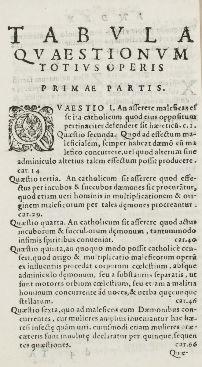 Le Malleus maleficarum contient donc logiquement des séries de questions que l’inquisiteur doit poser en respectant scrupuleusement l’ordre établi.