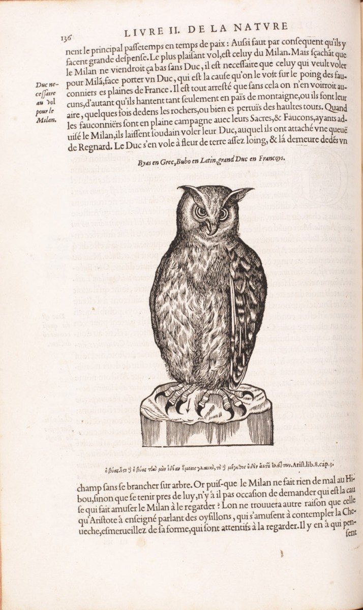 Hugues de Fouilloy était Prieur de Saint-Laurent-au-Bois, apprécié par Bernard de Clairvaux lui-même. Prônant l’humilité, il a écrit ce traité pour des moines, érudits ou non. C’est là la force de cette œuvre : s’adresser à tous au moyen d’une exégèse simple et d’illustrations frappant les esprits. S’inspirant de la tradition du Haut Moyen-âge, il considère l’animal comme un miroir de nos âmes et sert d’illustration morale de nos vertus et turpitudes. Hugues de Fouilloy utilise les oiseaux à cet effet. Si la huppe, dans le poème persan du XIIe siècle le Cantique des oiseaux, guide les oiseaux sur leur chemin spirituel, où tous ont des qualités et des défauts à travailler, dans le bestiaire moral qu’est le De avibus, les oiseaux ne symbolisent pas des caractères humains mais des qualités à développer ou à fuir. Tel est le cas du hibou où nous pouvons lire sous l’illustration: « Hibou. Malheureux hibou. Homme pêcheur ». Son cri funèbre, son antre supposée désordonnée, sa léthargie diurne et son activité nocturne font de lui l’oiseau de nuit symbolisant « ceux qui sont voués aux ténèbres du pêché », affirme Isidore de Séville (VIIe siècle). La chouette ulula pleure et bibo le hibou est voué au tombeau. Le hibou doit être fui comme le pêché, raison pour laquelle il est attaqué par les autres oiseaux et qu’il nous repousse. D’ailleurs…