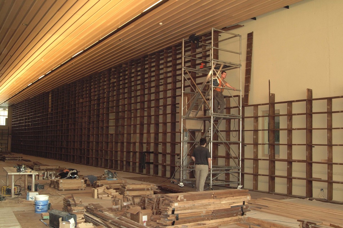 Dans le bâtiment contemporain de la Médiathèque, les architectes Pierre Du Besset et Dominique Lyon ont souhaité reconstituer un lieu historique existant dans le bâtiment de l’ancienne Bibliothèque municipale, rue de la Cité près de la cathédrale. La nouvelle Grande salle présente les mêmes volumes et dimensions que l’ancienne : 50 mètres de longueur, 9,50 mètres dans sa plus grande largeur, 7,80 mètres de hauteur. Cependant, son aménagement intérieur est différent. Une baie vitrée et des ouvertures latérales permettent au public de voir l’intérieur de la salle. Sa forme en angle crée un effet de perspective lorsqu’on s’approche de son entrée.