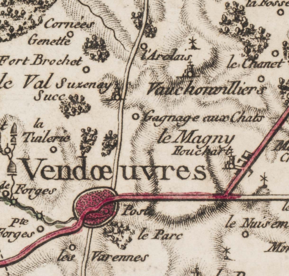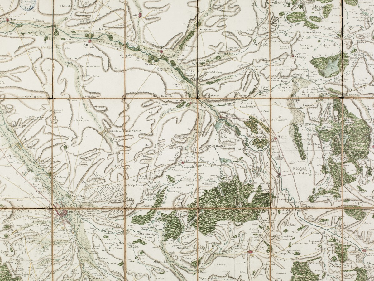 Carte générale de France [Troyes]N°81, établie sous la direction de César-François Cassini de Thury vers 1760 et détail avec localisation des moulins.