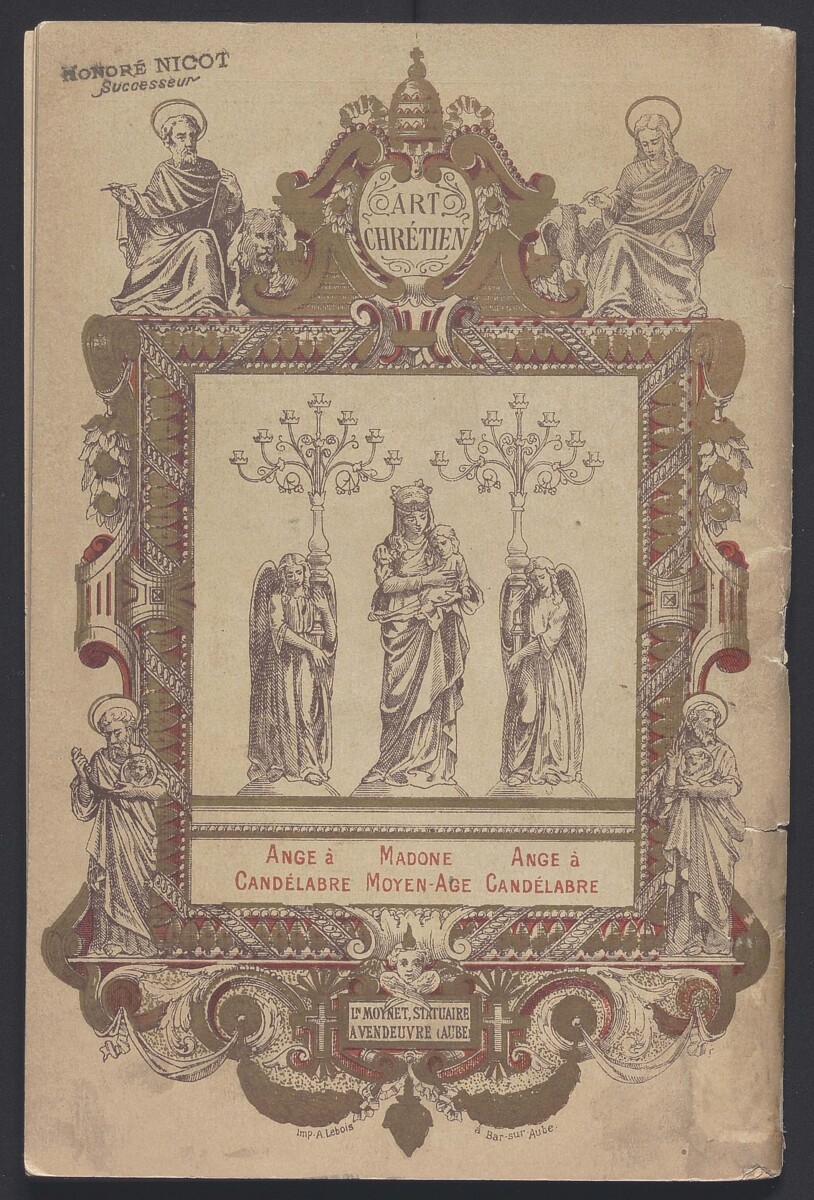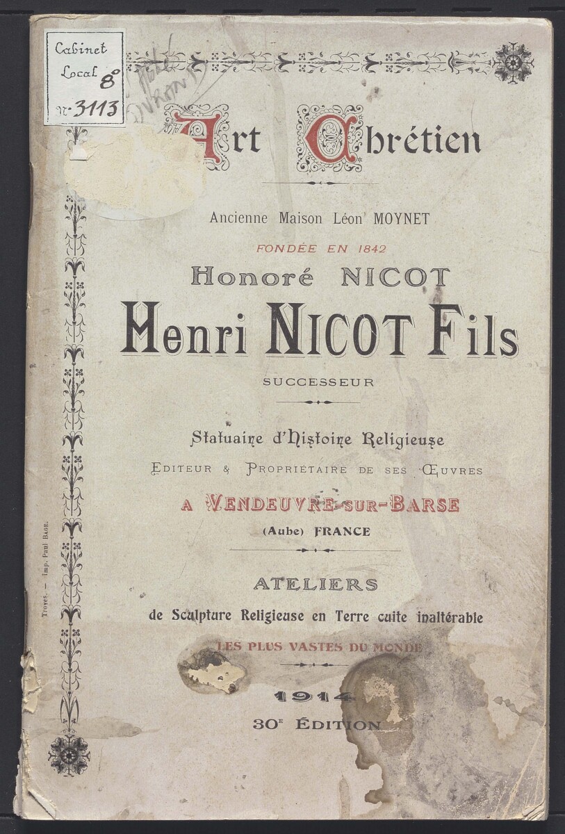 En octobre 1890, la Sainterie est reprise par Honoré Nicot, le comptable de l’entreprise. Il ne modifie que la décoration des statues pour les adapter aux goûts de l’époque. Il ajoute 83 nouveaux modèles créés par Désiré Briden (sculpteur notamment de la frise en bronze du Monuments aux Enfants de l’Aube, du Monument aux bienfaiteurs de la Ville de Troyes, place Jean-Jaurès à Troyes) et agrandit l’entreprise.