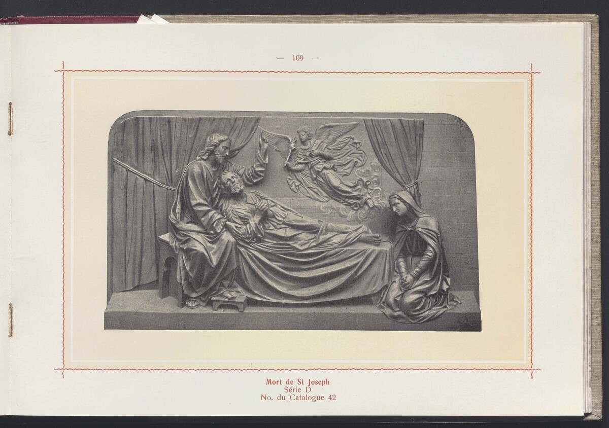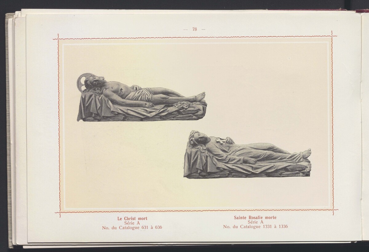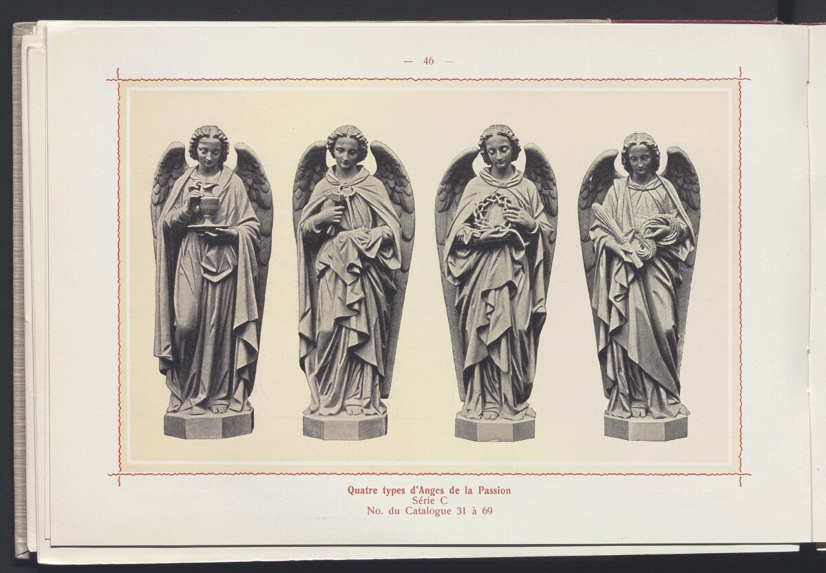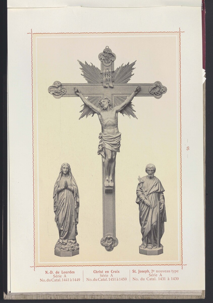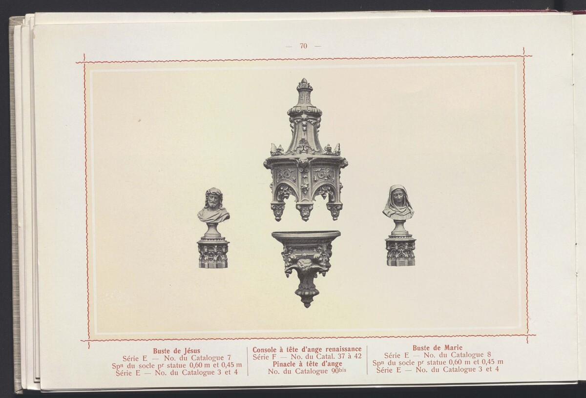 « Pour ce faire, à partir d’une sculpture originale, est confectionné un moule en plâtre destiné à en réaliser de multiples copies. Afin qu’il soit réutilisable, le moule se constitue de nombreuses pièces s’ajustant parfaitement entre elles et se calant dans une « chape » fermée par un couvercle. L’estampeur tapisse la surface intérieure du moule d’une couche d’argile puis assemble les deux parties de la chape au moyen d’une argile diluée en pressant fortement sur le couvercle. Le démoulage s’effectue quelques instants plus tard. […] Les statues étaient peintes et décorées ensuite. » Les saints de Vendeuvre dans la lumière : Exposition de statues de l’ancienne Manufacture d’Art Chrétien de Vendeuvre-sur-Barse. 15 juin-17 septembre 2023. Cathédrale Saint-Pierre et Saint-Paul de Troyes organisée par ArTho et la cathédrale de Troyes, F.L. 704.948 SAINT