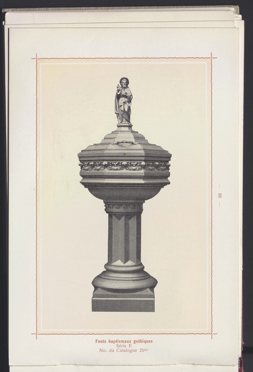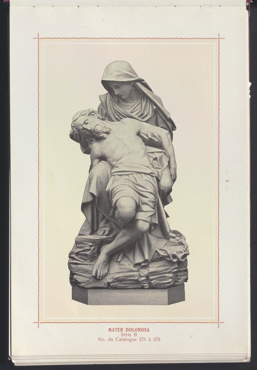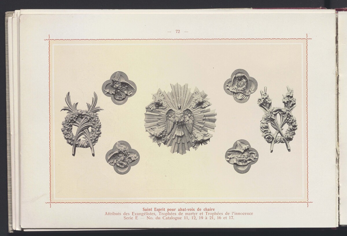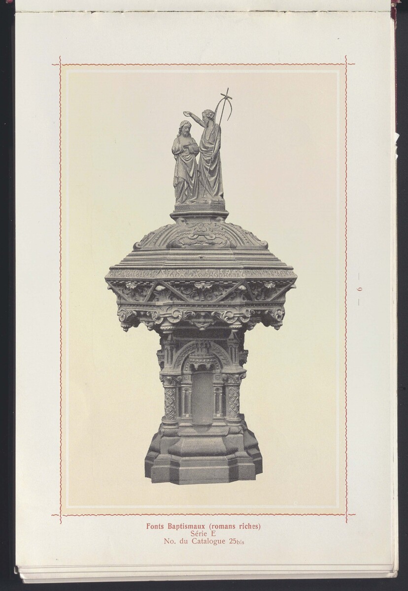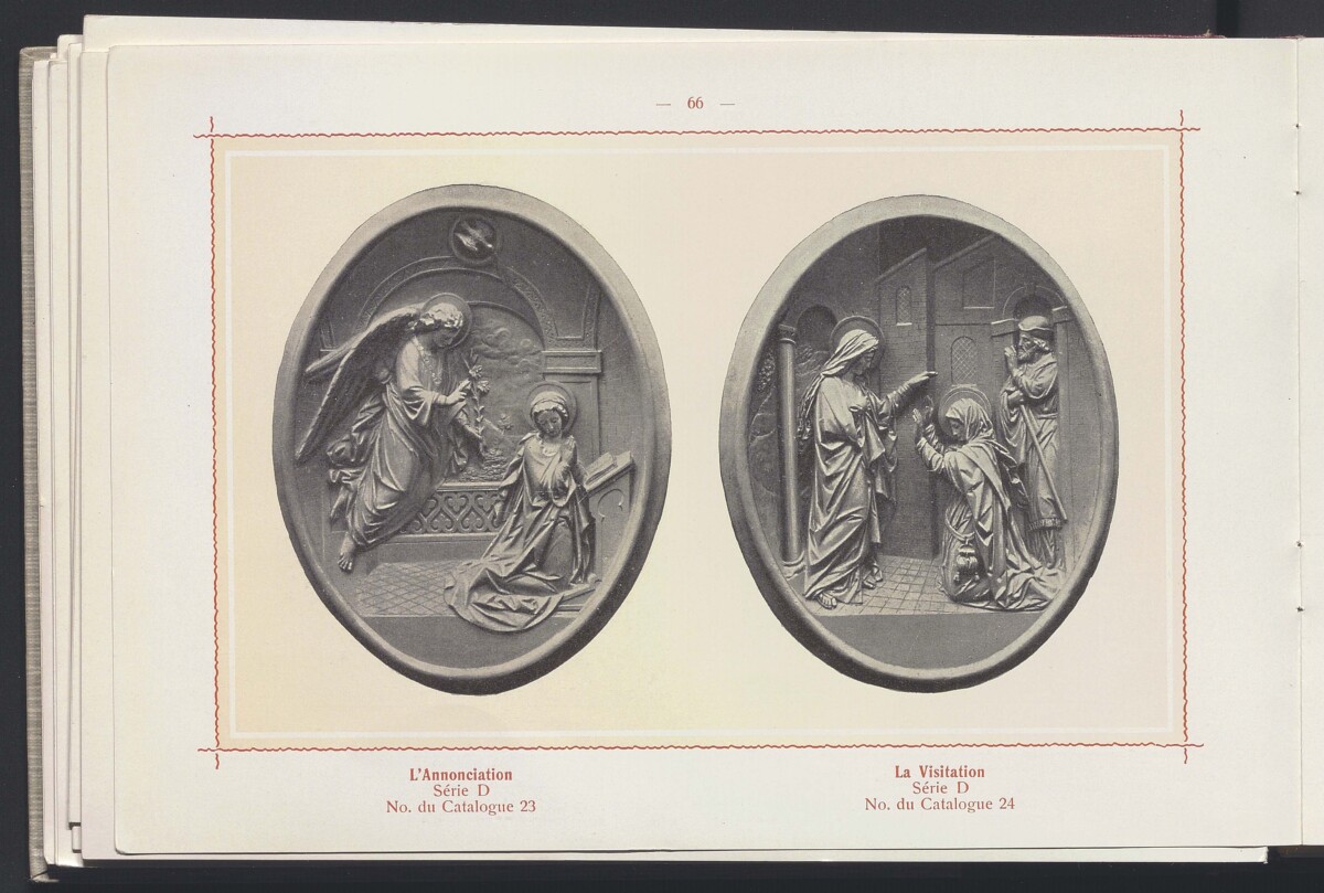 « Pour ce faire, à partir d’une sculpture originale, est confectionné un moule en plâtre destiné à en réaliser de multiples copies. Afin qu’il soit réutilisable, le moule se constitue de nombreuses pièces s’ajustant parfaitement entre elles et se calant dans une « chape » fermée par un couvercle. L’estampeur tapisse la surface intérieure du moule d’une couche d’argile puis assemble les deux parties de la chape au moyen d’une argile diluée en pressant fortement sur le couvercle. Le démoulage s’effectue quelques instants plus tard. […] Les statues étaient peintes et décorées ensuite. » Les saints de Vendeuvre dans la lumière : Exposition de statues de l’ancienne Manufacture d’Art Chrétien de Vendeuvre-sur-Barse. 15 juin-17 septembre 2023. Cathédrale Saint-Pierre et Saint-Paul de Troyes organisée par ArTho et la cathédrale de Troyes, F.L. 704.948 SAINT